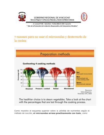 Como muestra el esquema superior sobre la pérdida de nutrientes según el método de cocción, el microondas arrasa practicamente con todo, como