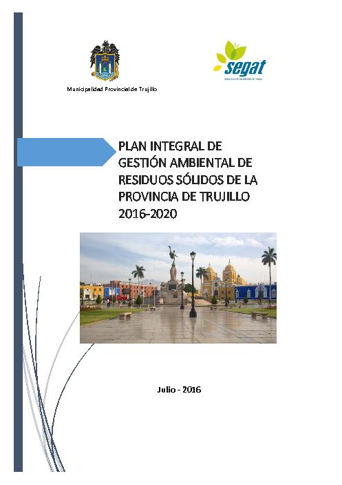 Por disposición de Decreto de Alcaldía Nº 015-2015-MPT se formula la “Actualización del Plan Integral de Gestión Ambiental de los Residuos Sólidos de la Provincia de Trujillo” instrumento de gestión ambiental que tiene por finalidad su manejo integral y sostenible, a fin de prevenir la contaminación ambiental y proteger la salud de la población y que consta de tres capítulos.