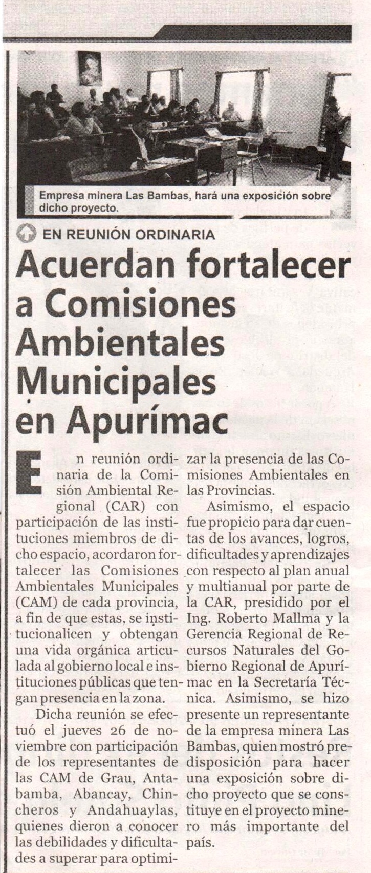 Acuerdan Fortalecer a Comisiones Ambientales Municipales en Apurimac