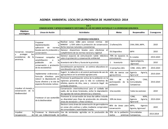 AGENDA AMBIENTAL EN LA PROVINCIA DE HUANTA 2013-2014