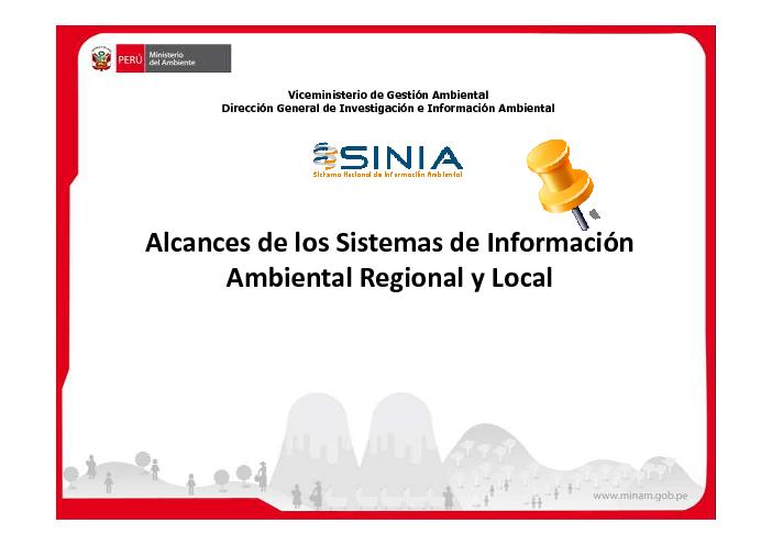 Esta presentacion ha sido elaborada por el area de informacion ambiental de la Direccion General de Investigacion e Informacion Ambiental, el mismo que hace un resumen de la situacion de los sistemas de informacion ambiental hasta el mes de marzo del 2013