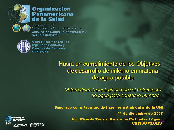 Alternativas tecnológicas para el tratamiento de agua para consumo humano