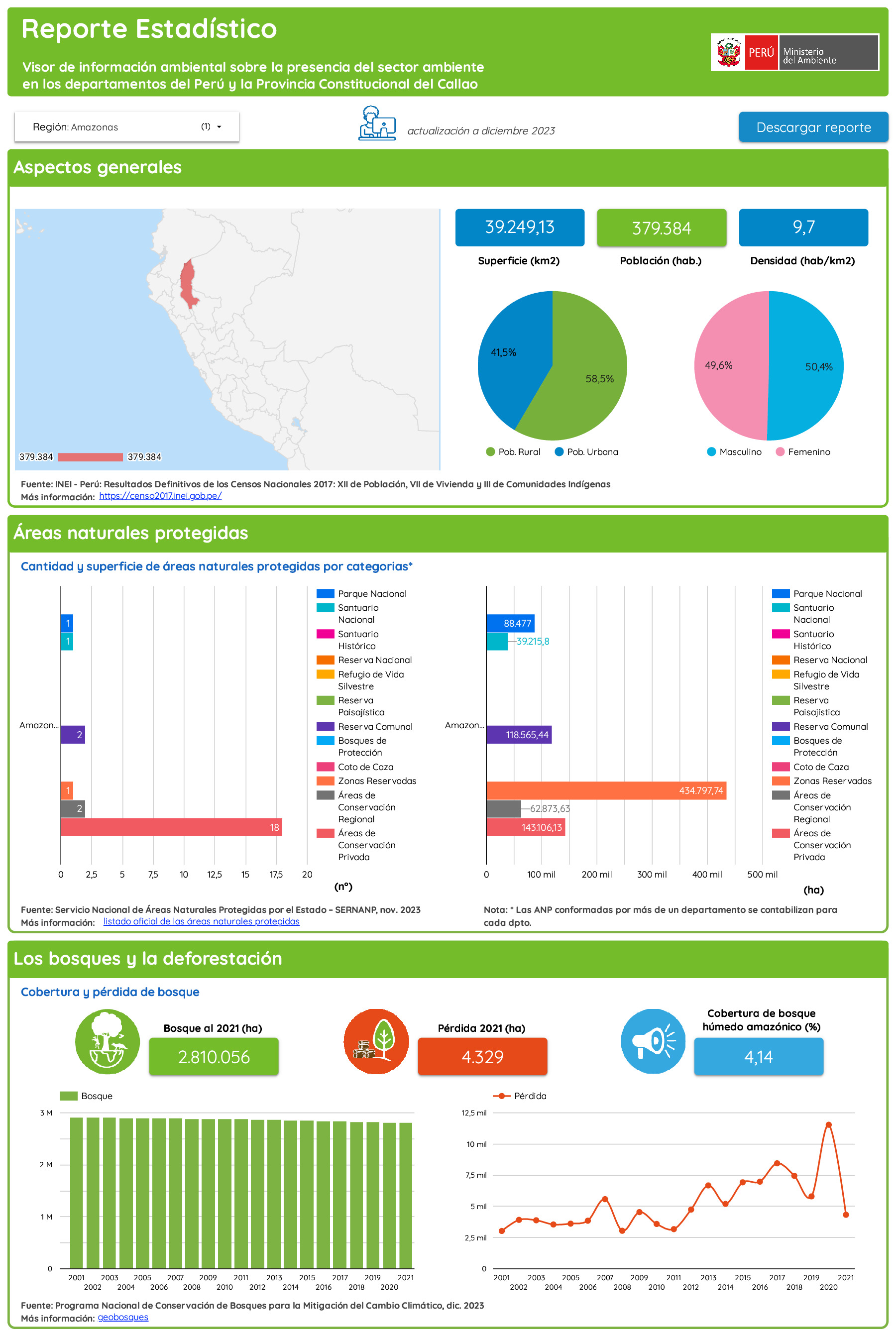Amazonas, Reporte Estadístico Departamental, diciembre 2023