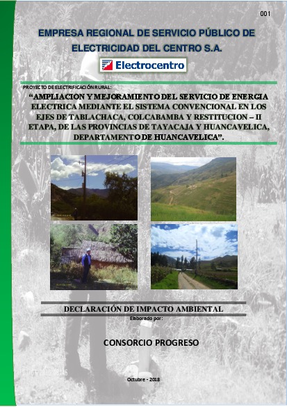 Ampliación y Mejoramiento del Servicio de Energía Eléctrica mediante el Sistema Convencional en los Ejes de Tablachaca, Colcabamba y Restitución - II Etapa, de las Provincias de Tayacaja y Huancavelica, Departamento de Huancavelica.