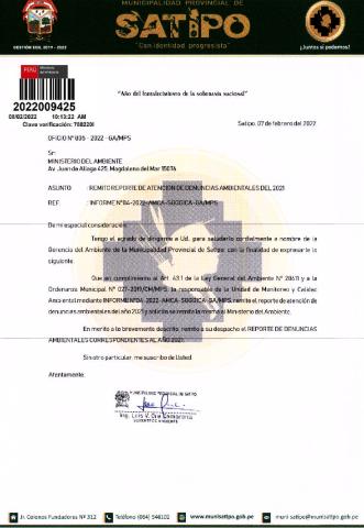 Atención de denuncias ambientales del 2021 de la Municipalidad Provincial de Satipo