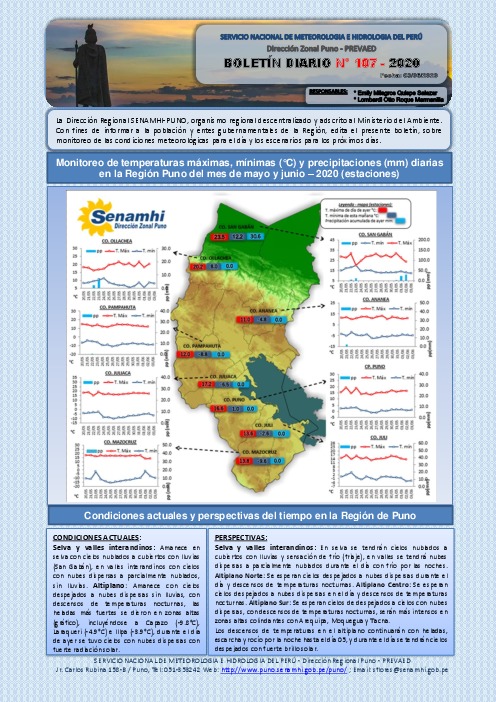 Boletín Diario del 03 de junio del 2020 SENAMHI Puno