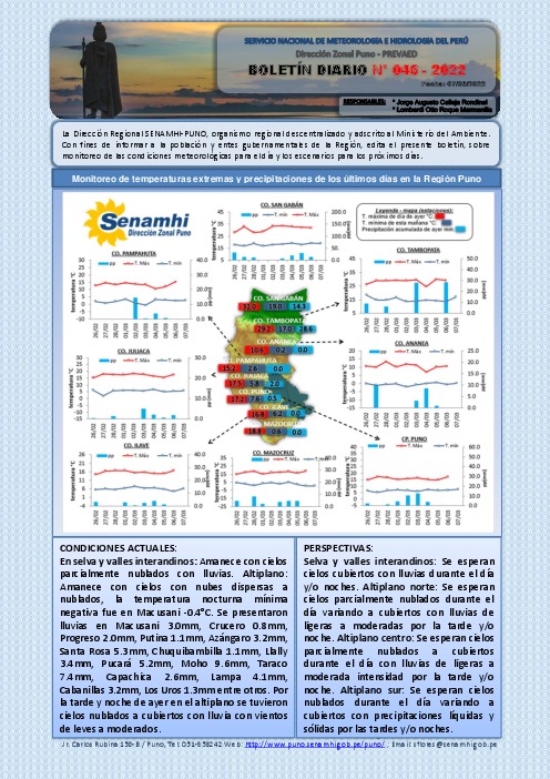 “Boletín Diario” del 07 DE MARZO 2022, para el Departamento de Puno