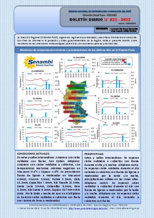 “BOLETÍN DIARIO” DEL 15 DE FEBRERO 2022 PARA EL DEPARTAMENTO DE PUNO
