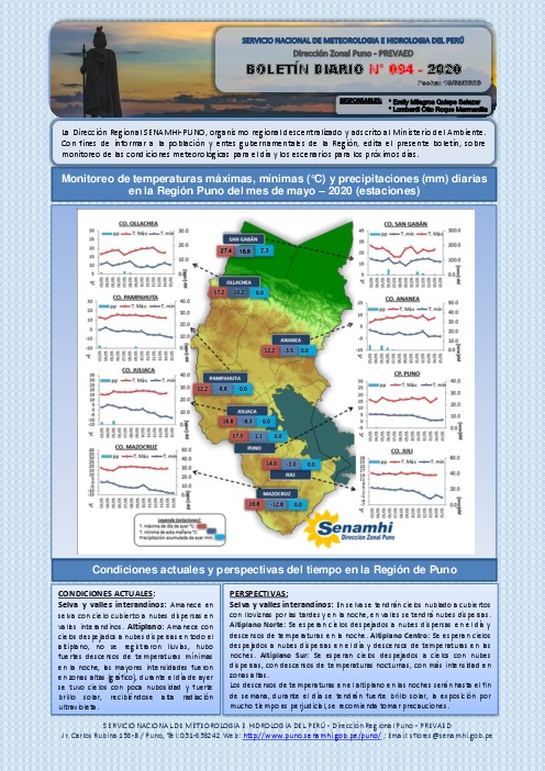 Boletín Diario del 15 de mayo del 2020 SENAMHI Puno