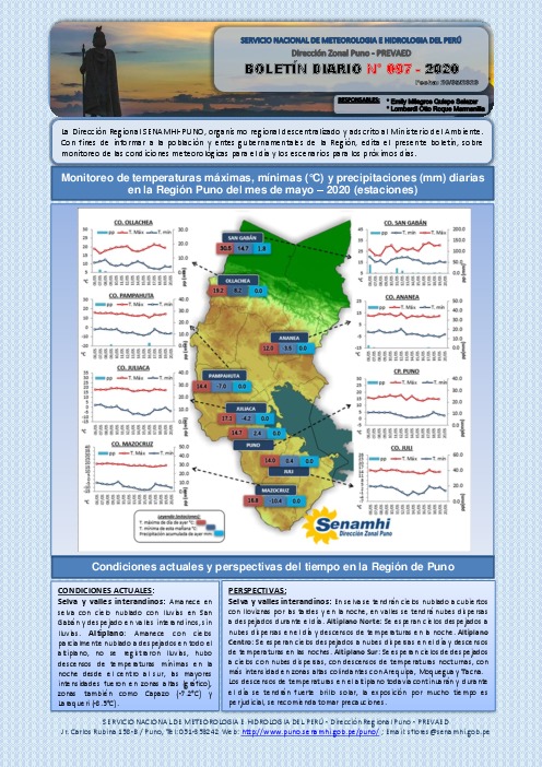 Boletín Diario del 20 de mayo del 2020 SENAMHI Puno