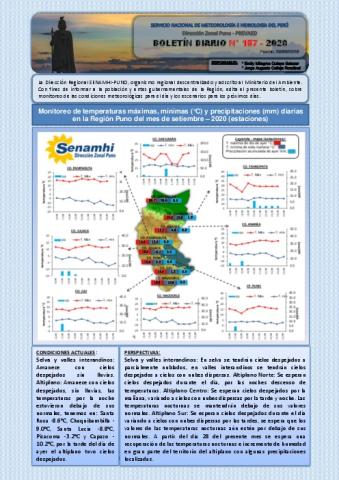 “BOLETÍN DIARIO” DEL 25 de SETIEMBRE DEL 2020 PARA EL DEPARTAMENTO DE PUNO