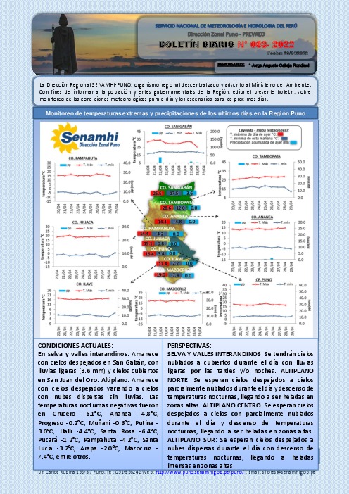 “BOLETÍN DIARIO” DEL 29 DE ABRIL 2022 PARA EL DEPARTAMENTO DE PUNO.