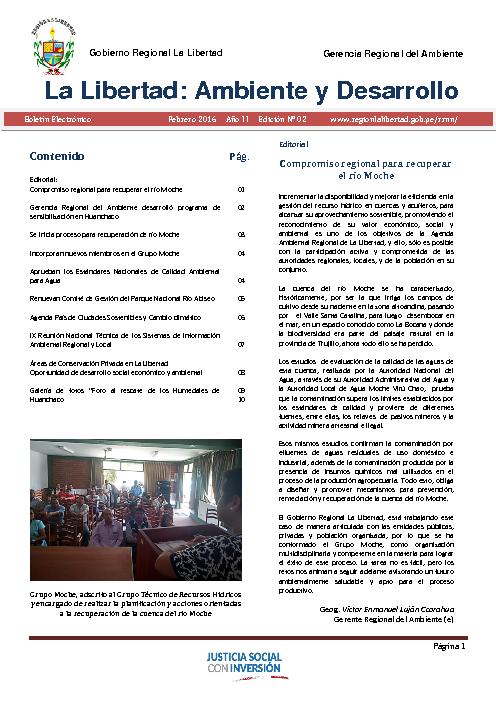 La Gerencia Regional del Ambiente presenta su Boletín, correspondiente al mes de Febrero del 2016.