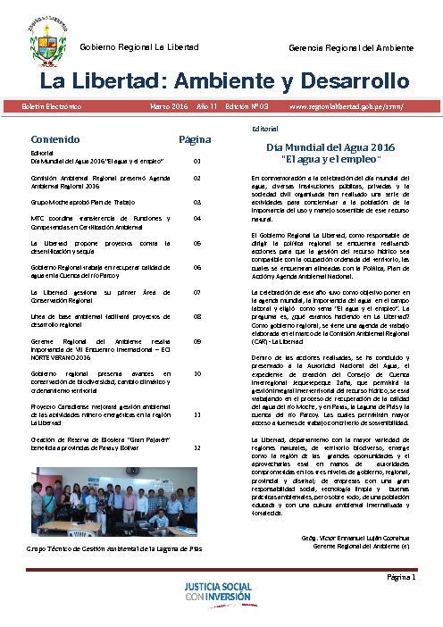 La Gerencia Regional del Ambiente presenta su Boletín, correspondiente al mes de Marzo del 2016.
