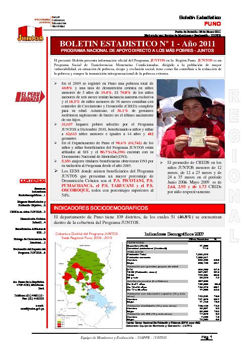 Boletín Estadistico Nº 1 del Programa JUNTOS, Año 2011