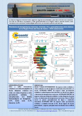 BOLETIN DIARIO HIDROMETEOROLOGICO DE LA REGION DE PUNO, PARA EL 07 DE MARZO DEL 2023.
