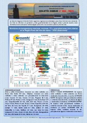 BOLETIN HIDROMETEOROLOGICO DIARIO DE LA REGION DE PUNO PARA EL 20 DE MARZO DEL 2023.