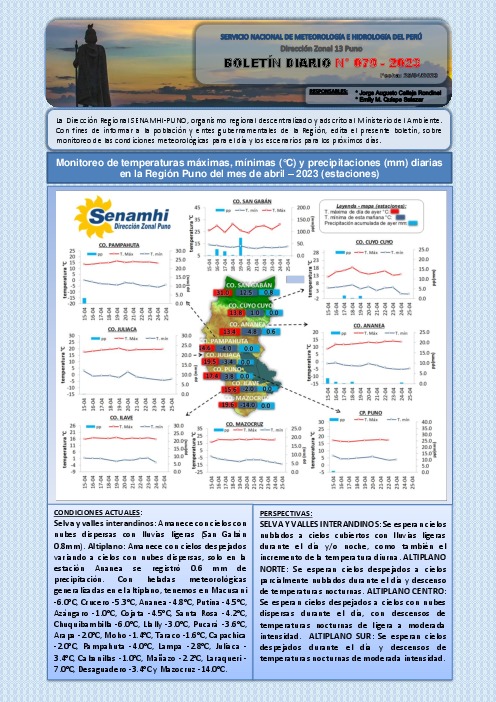 BOLETIN HIDROMETEOROLOGICO DIARIO DE LA REGION DE PUNO, PARA EL 25 DE ABRIL DEL 2023.