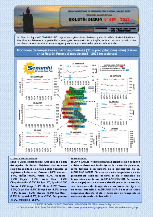 BOLETIN HIDROMETEOROLOGICO DIARIO DE LA REGION DE PUNO, DEL 26 DE ABRIL DEL 2023.