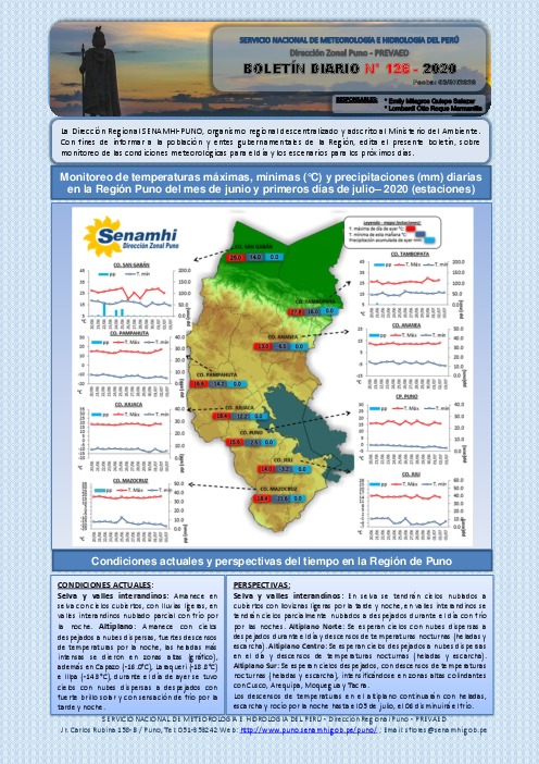 Boletín hidrometeorologico diario de 03 de julio 2020 SENAMHI Puno