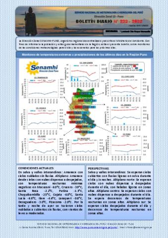 BOLETIN HIDROMETEOROLOGICO DIARIO DE LA REGION DE PUNO, PARA EL 04 E NOVIEMBRE 2022.