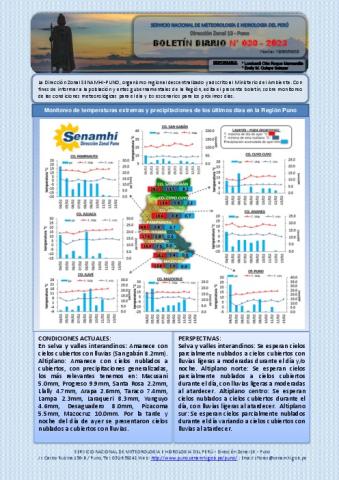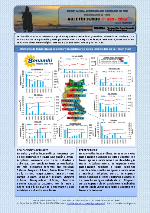 BOLETIN HIDROMETEOROLOGICO DIARIO DE LA REGION DE PUNO, PARA EL 13 DE FEBRERO DEL 2023.