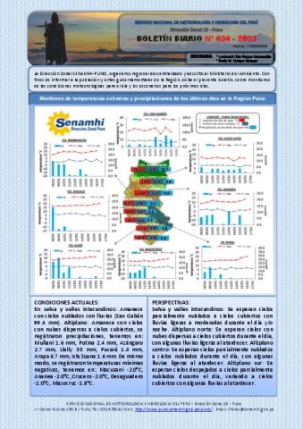 BOLETIN HIDROMETEOROLOGICO DIARIO DE LA REGION DE PUNO, PARA EL 17 DE FEBRERO DEL 2023