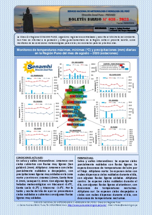 BOLETIN HIDROMETEOROLOGICO DIARIO DE LA REGION DE PUNO, PARA EL 20 DE FEBRERO DEL 2023