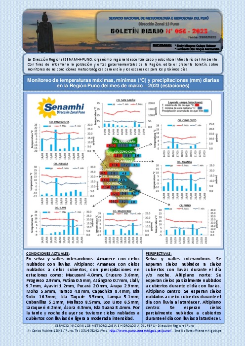 BOLETIN HIDROMETEOROLOGICO DIARIO DE LA REGION DE PUNO PARA EL 23 DE MARZO DEL 2023.