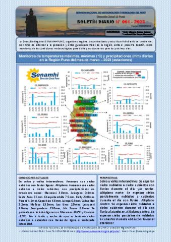 BOLETIN HIDROMETEOROLOGICO DIARIO DE LA REGION DE PUNO PARA EL 28 DE MARZO DEL 2023.