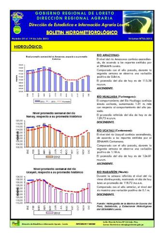 El presente boletín nos muestra el reporte hidrometeorológico de la dirección de estadística e información agraria de la dirección Regional Agraria de Loreto.
