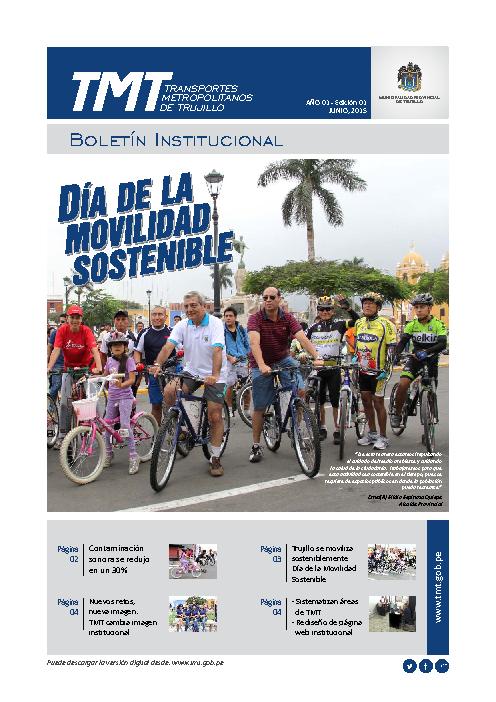 En esta revista se menciona las acciones que está realizando Transporte Metropolitano de Trujillo (TMT) en el 2015 que son: “Día de la Movilidad Sostenible\\\" donde la contaminación sonora se redujo en un 30% y Trujillo se movilizó sosteniblemente, nuevos retos, nueva imagen (TMT cambia de imagen institucional), sistematizan áreas de TMT y rediseño de la página web institucional.