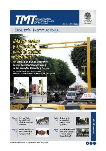 En esta revista elaborada por Transporte Metropolitano de Trujillo (TMT) trata los siguientes temas que son: 5ta edición del Día de la Movilidad Sostenible , Mayor Orden y seguridad para el vecino y peatón, y Centro de Control de Tráfico (CCT) lanza campaña: Conociendo mi seguridad vial.