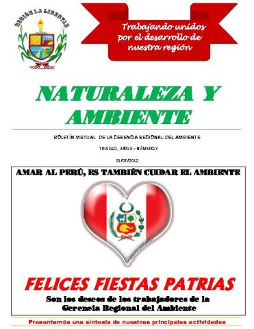 La Gerencia Regional del Ambiente presenta una sintesis de sus actividades que bienen desarrollando durante el mes de julio, no sin antes desearles felices fiestas patrias.