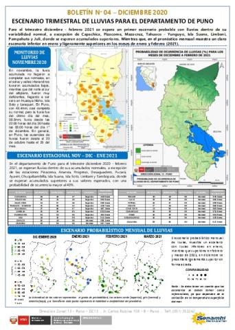 BOLETÍN N° 04 – ESCENARIO TRIMESTRAL DE LLUVIAS PARA EL DEPARTAMENTO DE PUNO