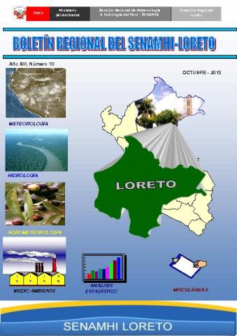 SENAMHI presenta el Boletín Hidrometeorológico del Perú, edición Nº 10 correspondiente al mes de Octubre 2013, con información actualizada del comportamiento de las variables meteorológicas, hidrológicas, agrometeorológicas y ambientales y sus perspectivas para el mes siguiente.