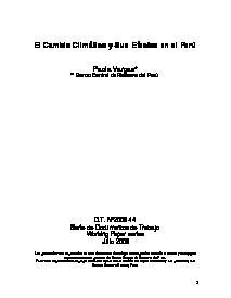 El Perú muestra una gran vulnerabilidad ante variaciones climáticas drásticas, siendo evidencia de ello las pérdidas económicas que implicaron fenómenos como el Niño. Así, bajo un escenario pasivo los efectos del cambio climático podrían ser incluso superiores ya que los efectos se potenciarían al involucrarse otros mecanismos que afectan negativamente el crecimiento; como la pérdida de disponibilidad de recursos hídricos (para consumo humano y generación energética) debido al retroceso glaciar, la pérdida de productividad primaria agrícola y pesquera producto del aumento de la temperatura del mar, la pérdida de biodiversidad, y efectos sobre la salud humana. Este informe otorga una descripción general sobre el fenómeno de cambio climático, así como el contexto global en el que éste se interrelaciona, enfocando el análisis en las consecuencias e impactos económicos tanto para la economía global como para la peruana.
