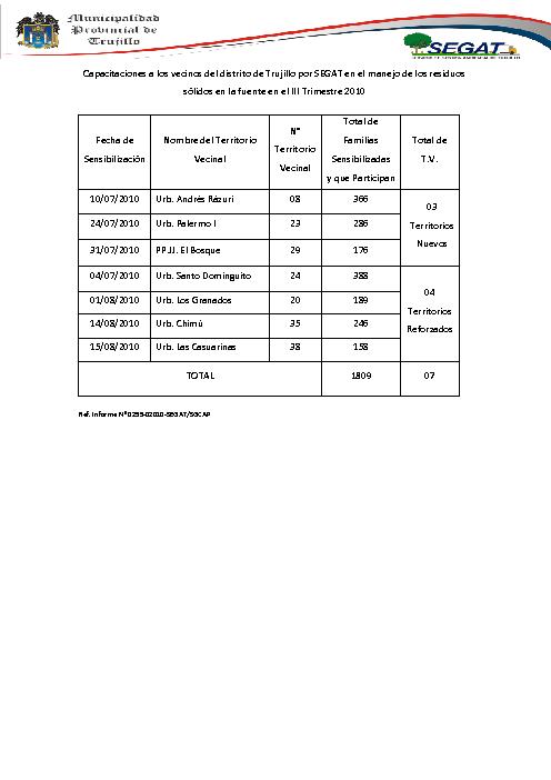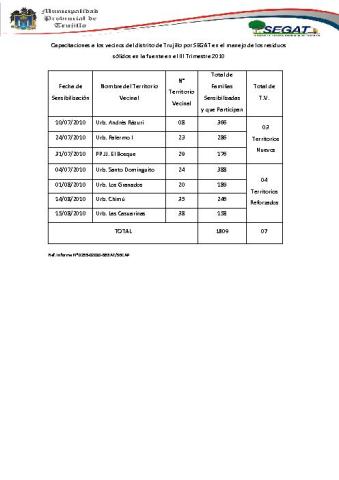 Capacitaciones a los vecinos en el manejo de los residuos sólidos en la fuente en el III Trimestre 2010 en la ciudad de Trujillo