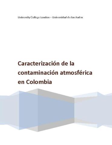 Este informe busca presentar un marco teórico de contaminación del aire destacando cuáles son estos contaminantes, sus orígenes y su importancia frente a la salud y el medio ambiente. Este marco también menciona la importancia del transporte como unos de los contribuyentes mayores, y proporciona un análisis de contaminación de las dos ciudades principales en Colombia: Bogotá y Cali.