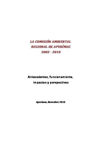 Comision Ambiental Regional de Apurimac 2002-2010: Antecedentes, funcionamiento, impactos y perspectivas