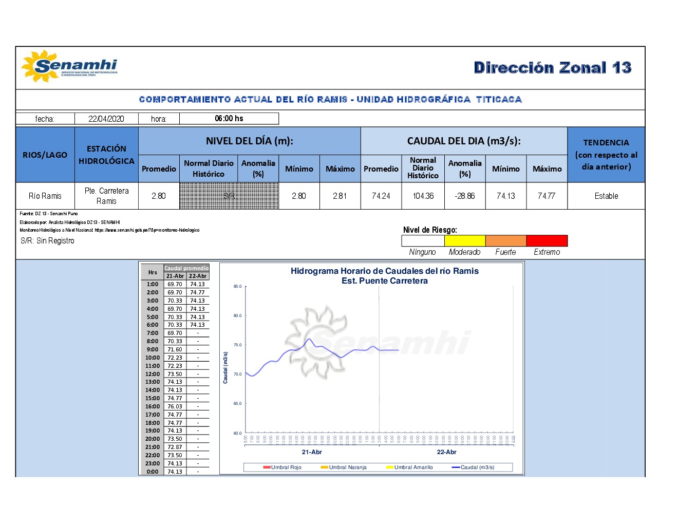 COMPORTAMIENTO ACTUAL DEL RÍO RAMIS - UNIDAD HIDROGRÁFICA TITICACA 22/04/2020