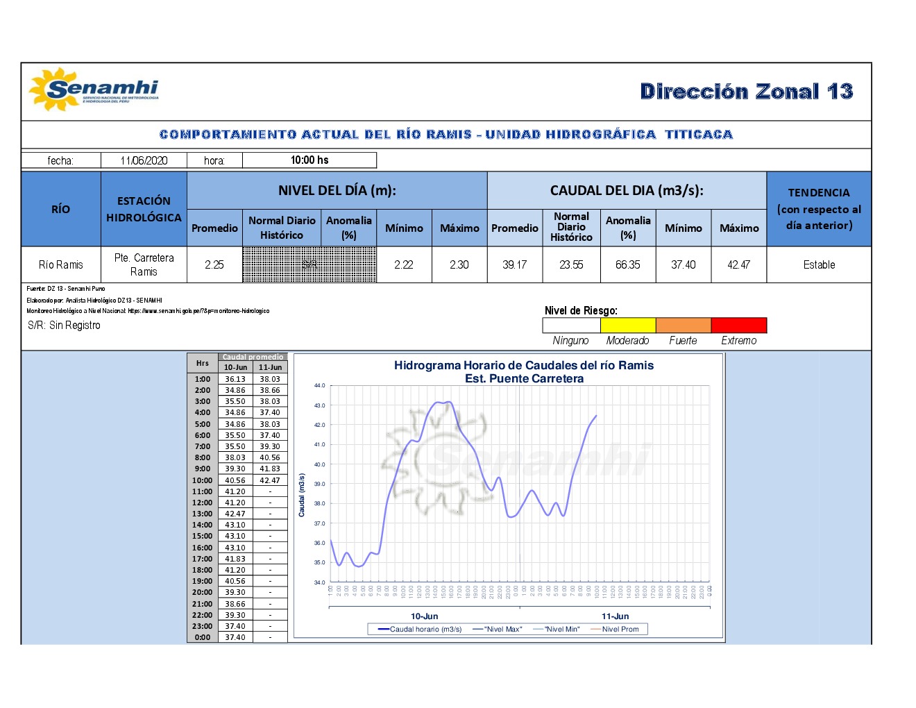 COMPORTAMIENTO ACTUAL DEL RÍO RAMIS - UNIDAD HIDROGRÁFICA TITICACA 11/06/2020