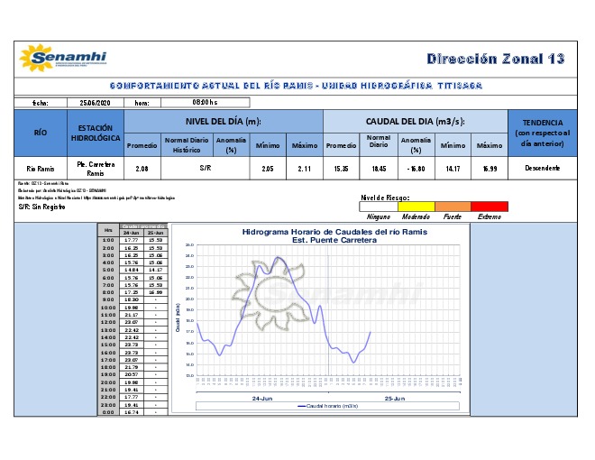 COMPORTAMIENTO ACTUAL DEL RÍO RAMIS - UNIDAD HIDROGRÁFICA TITICACA 25/06/2020