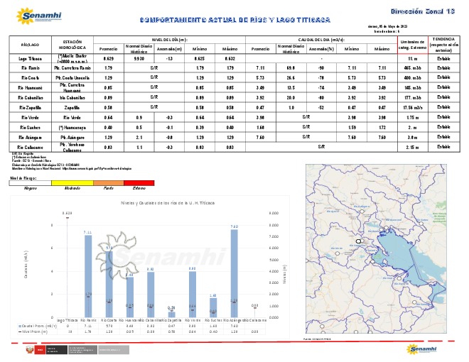Reporte hidrológico DZ13 Puno del 05/05/2023