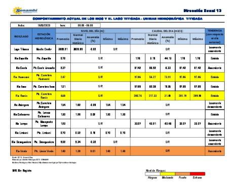 COMPORTAMIENTO ACTUAL DE LOS RIOS Y EL LAGO TITICACA - UNIDAD HIDROGRÁFICA TITICACA