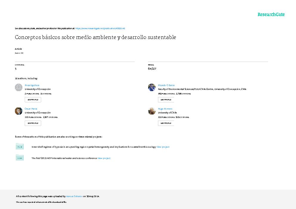 El presente manual, desarrolla importantes aspectos científicos referidos a "Conceptos Básicos sobre Medio Ambiente y Desarrollo Sustentable ", y ofrece a los docentes de nuestro sistema educativo, un marco conceptual con un enfoque integral, que se constituye en un componente didáctico fundamental para optimizar la calidad del proceso de enseñanza y aprendizaje.