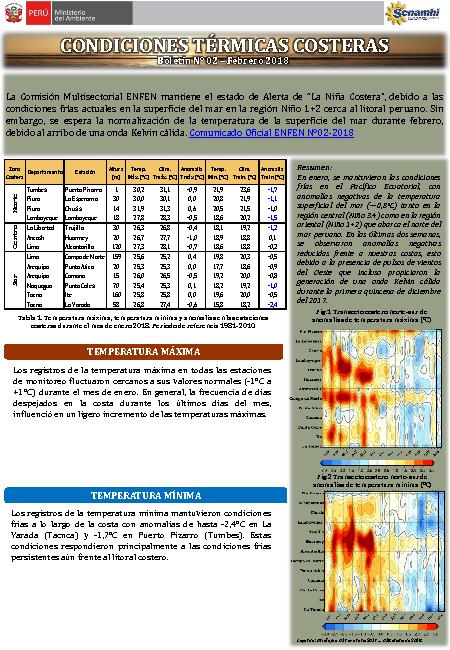 CONDICIONES TÉRMICAS COSTERAS Boletín N° 02 – Febrero 2018
