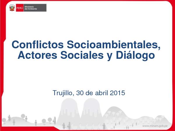 Esta presentación se llevó a cabo por la Oficina de Asesoramiento en Asuntos Socioambientales (OAAS) del Ministerio del Ambiente en el 3er Taller de capacitación en Facilitación, Negociación y Diálogo en conflictos que se realizó el 30 de abril del 2015, en el Auditorio del Centro Regional de Capacitación, ubicado en Av. España 1800, Cercado de Trujillo. Este taller se desarrolló con el objetivo de fortalecer las capacidades técnicos-prácticas de los funcionarios y especialistas, en instrumentos referidos a la prevención y gestión de conflictos socioambientales, así como fortalecer la Red de Alerta Temprana – La Libertad.