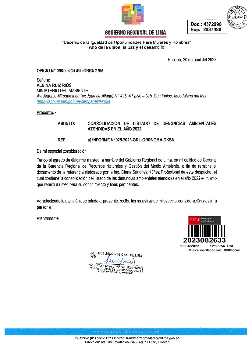 Consolidación de listado de denuncias ambientales atendidas en el año 2022 por el Gobierno Regional de Lima