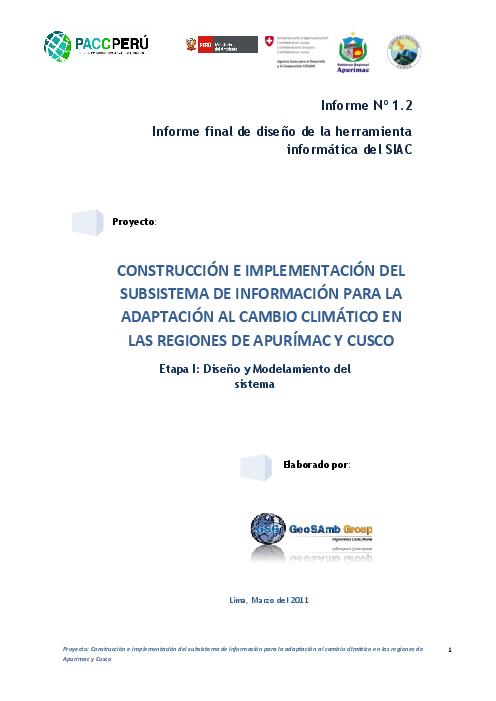 Construcción e implementación del subsistema de información para la adaptación al cambio climático en las regiones de Apurímac y Cusco. Etapa I: Diseño y Modelamiento del Sistema